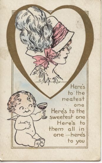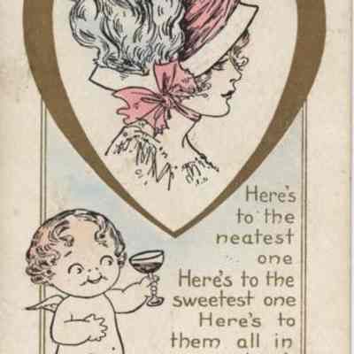 Comic cards, Cupids, Women, Toasting, Champagne (Wine), Ribbons, Hats, FeathersSearch Terms