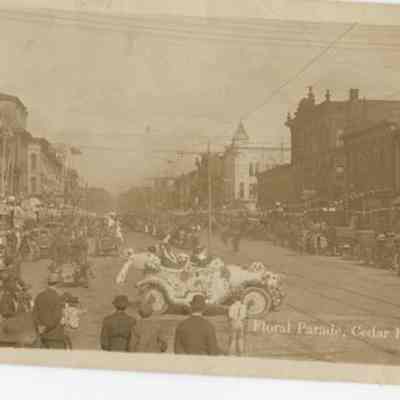 Automobiles, Buildings, People, Parades & processions, Photographs, Photography, Postal cards, PostcardsSearch Terms