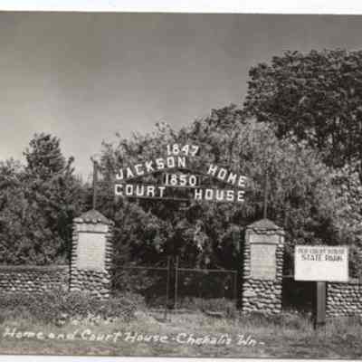 Black & White postcard - Jackson Home and Courhouse southeast 15 miles from Chehalis, WA.Lexicon