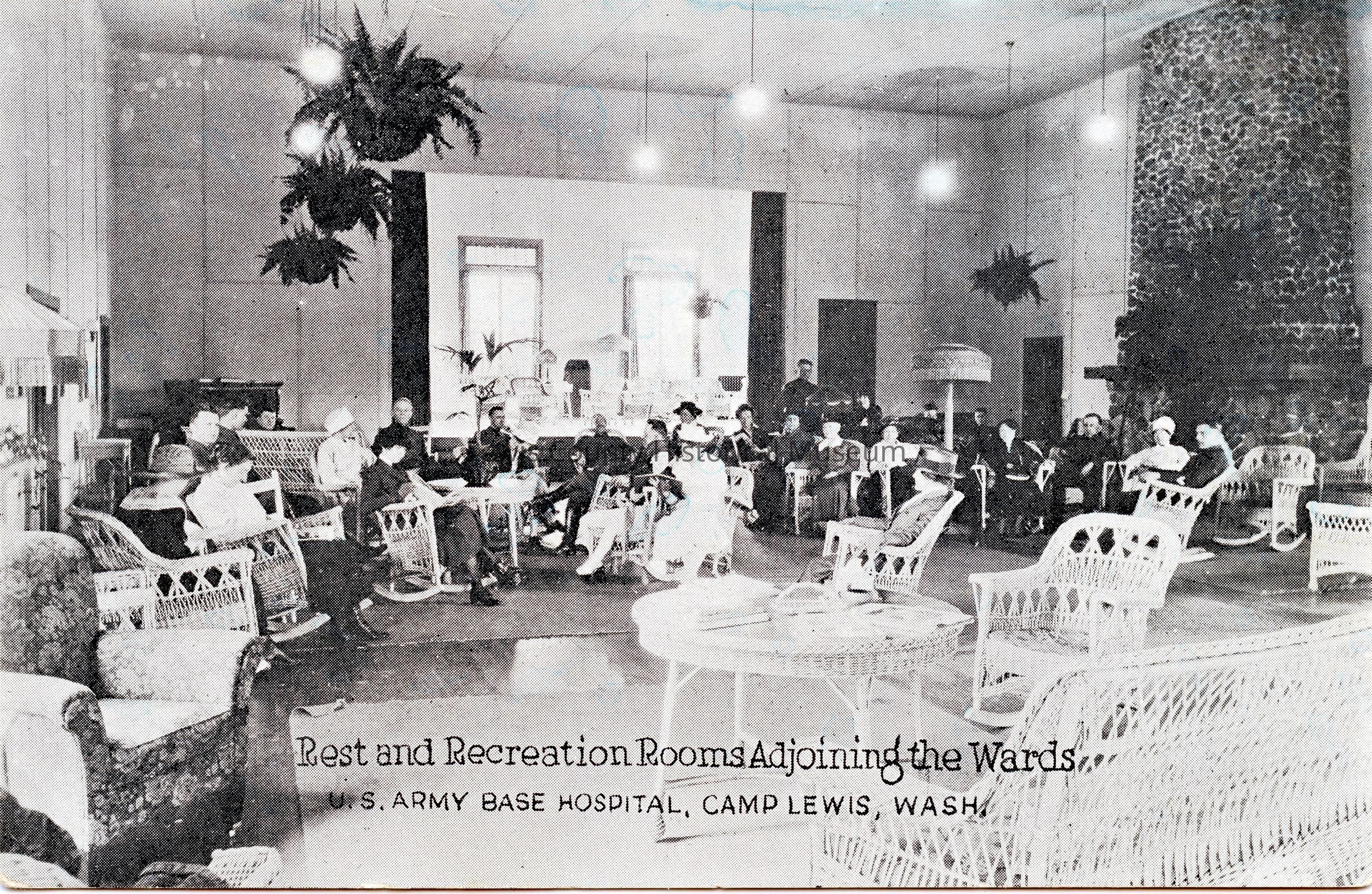 Picture of Rest and Recreation Rooms adjoining the Wards at the U. S. Army Base Hospital, on Camp Lewis, Wash.Lexicon