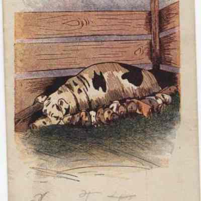 Cards, Drawing, Drawings, Animals, Pig houses, Swine, Postcards, Postal cardsSearch Terms