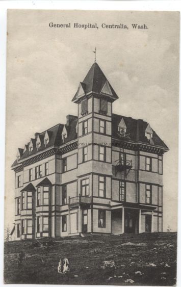 1 Black & White and 1 Color postcard - General Hospital, Centralia, WA., the former Baptist Seminary. Circa 1910 - 12.Lexicon