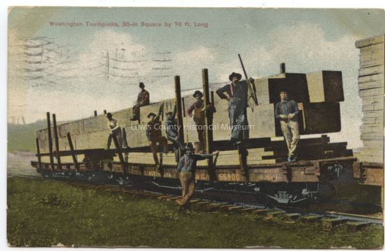 Color picture - Washington toothpicks, timbers 30 inch square x70 feet long. Postmark 1910.Lexicon