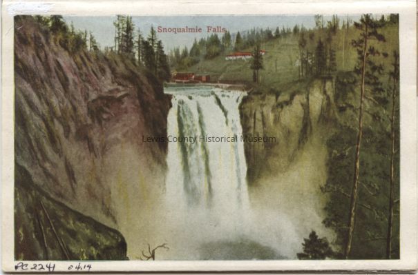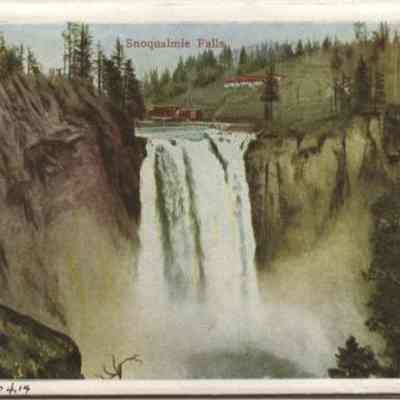 Color postcard - Snoqualmie Falls (1 of 20 card in folder, circa 1910 - 1915).Lexicon