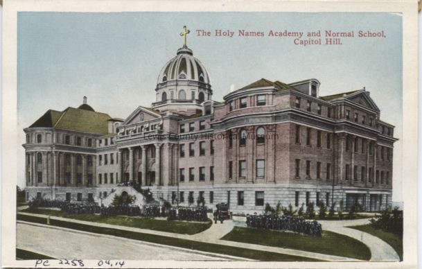 Color postcard - Holy Names Academy & Normal School, Capitol Hill, Seattle,WA, (18th of 20 card in folder, circa 1910 - 1915).Lexicon