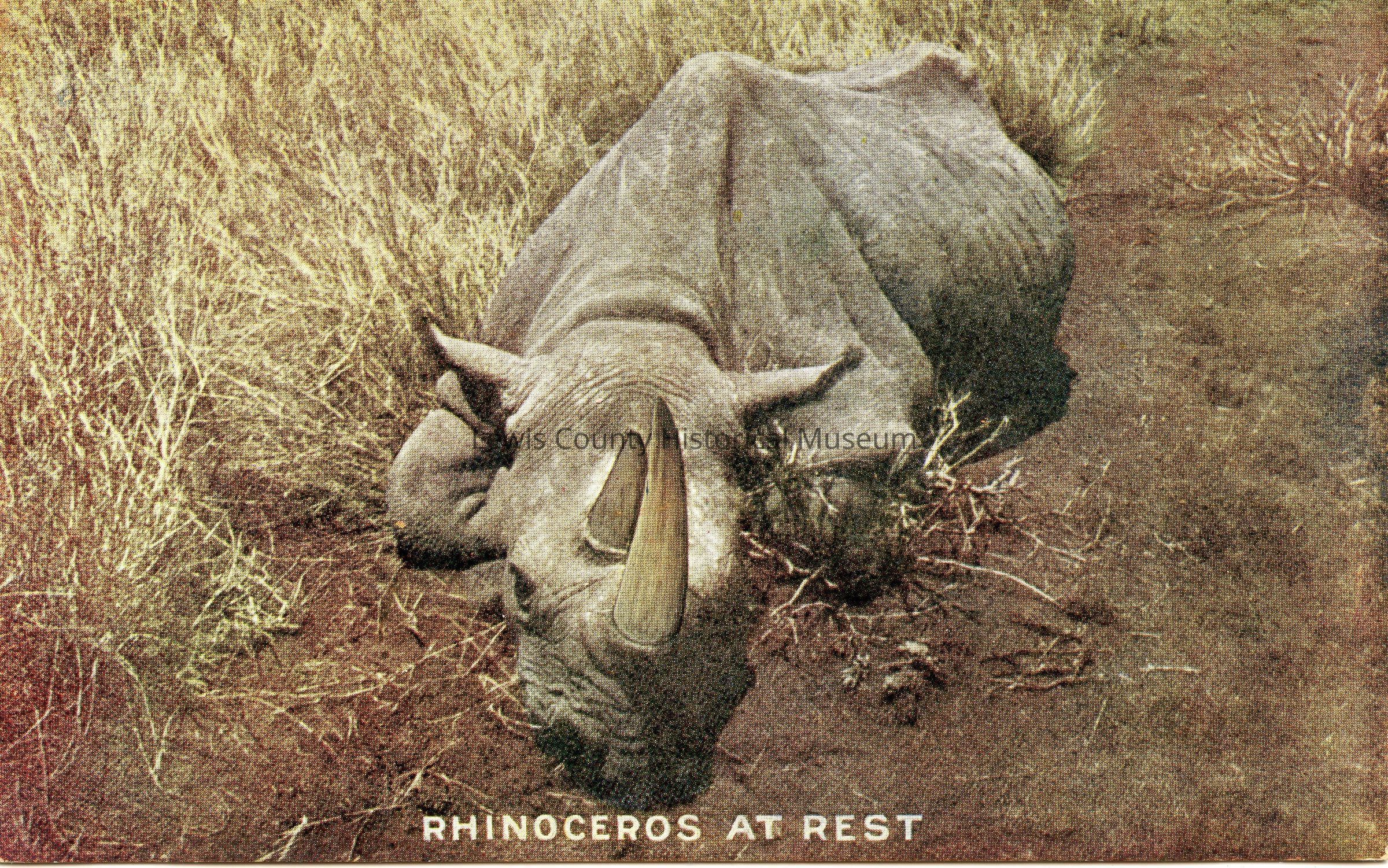 "Roosevelt Tour" Postcard titled Rhinoceros at Rest.Lexicon