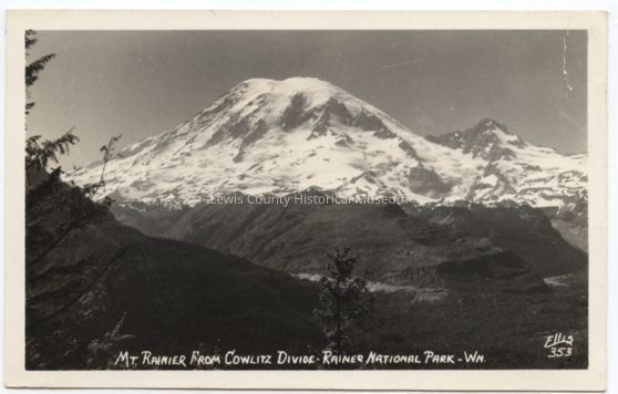 Black & White postcard - Mt. Rainier, from Cowlitz Divide, Mt. Rainier National Park, WA. Ellis photo.Acquisition