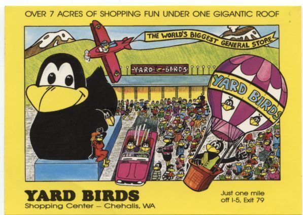 Color Postcard. Yard Birds Shopping Center at 2100 National Ave. in Chehalis, WA.Lexicon