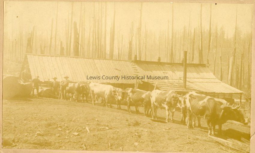 Oxen used for logging Washington Territory 1880