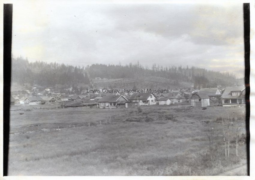 Photo from Millett field area toward 3rd and Hillside of Chehalis, WA. ca. 1920. P8606 is 1982 view from same location.Collection