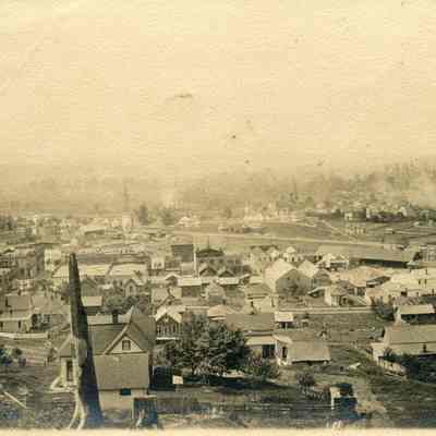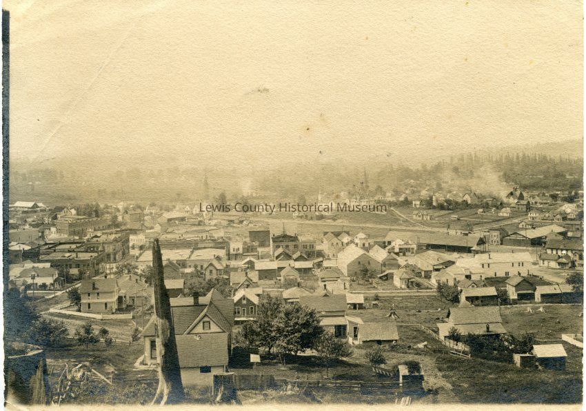 Birdseye view of Chehalis, WA 1905, done in 3 sections. The first section is missing.