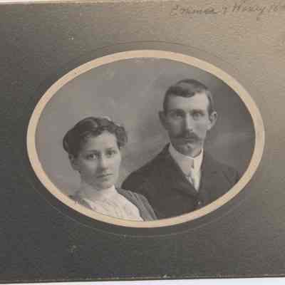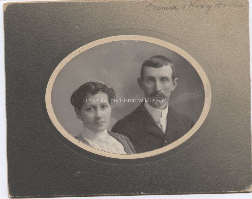 Portrait of Emma and Henry Harris, ca. 1910, relatives of Edward Harris of Boistfort. Cardboard-mounted, black and white, Burke collection, 03.22.Collection