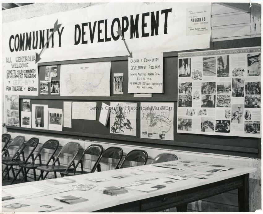 Good view of the display for the Chehalis Community Development booth at the SWW Fair, August 1954.Collection
