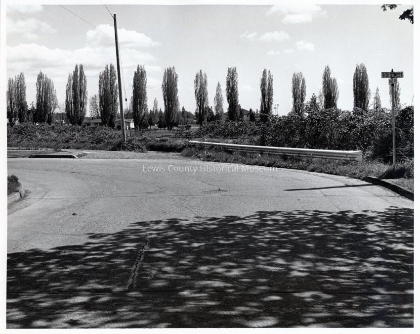 At south end of Chehalis Avenue at 9th St. Poplars are on line of Green Hill property. Looking south. 1972.Lexicon