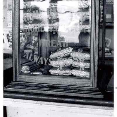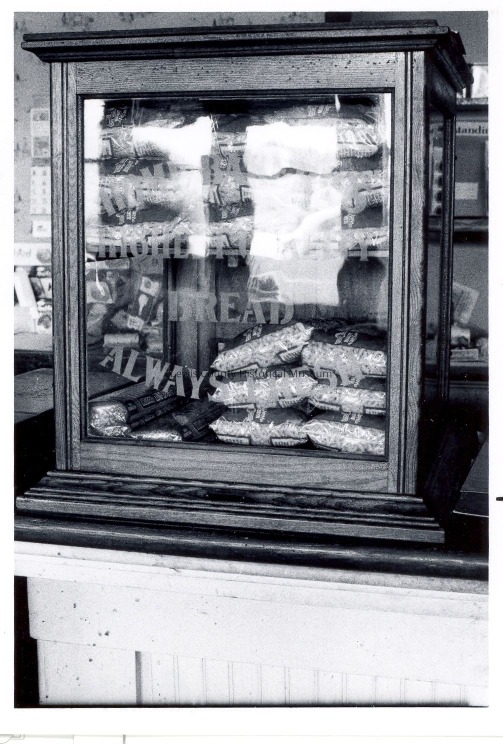 Doty Grocery store bread case, writing on the front says "Home baked bread always fresh" photo taken in 1978. Have negative.Lexicon
