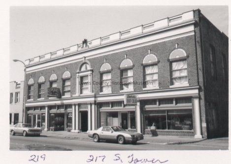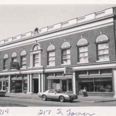 Old Eagles Building at 217 S. Tower, Centralia, for many years Centralia Beauty School. The south door is 219 S. Tower. Photo ca. 1987. 2x3, black and white print, 04.13.Cataloged By