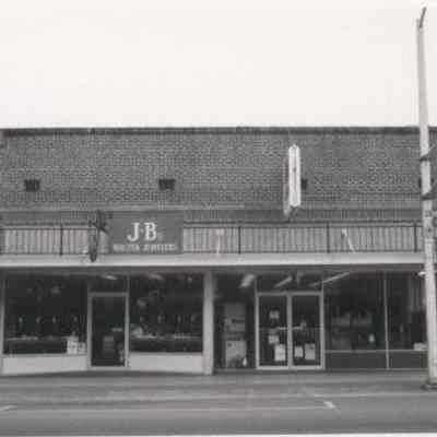 Nyholm TV and Appliance at 102 N. Tower and J&B Master Jewelers at 104 N. Tower, Centralia. Photo ca. 1987. 2x3, black and white print, 04.13.Cataloged By