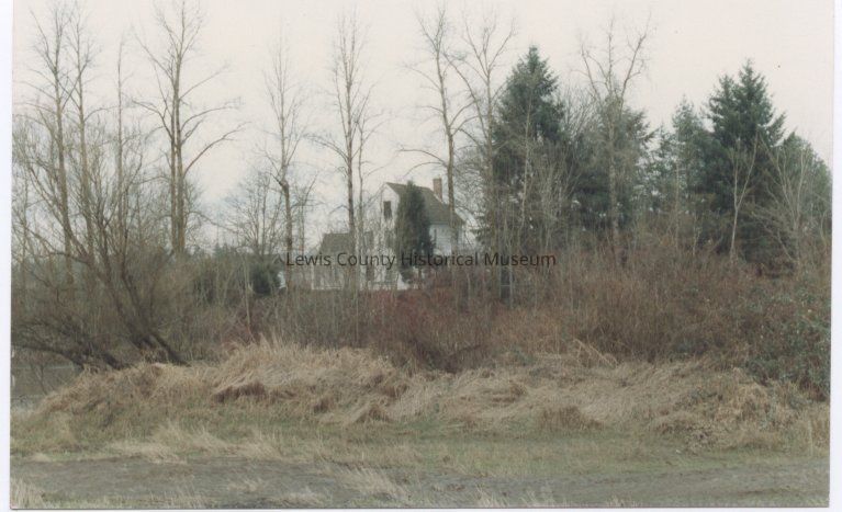 Borst House, Centralia, from south side near Chehalis river bank. 3 1/2x5, color print. ca. 1987, 04.13.Cataloged By