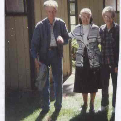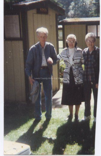 Roe "Rex" Burgess of Doty, later Centralia and wife Vera on right, ca. 1980-82, died 4 Apr. 1985. No ID on woman in center. 2 1/8x3 1/2, color print.Cataloged By