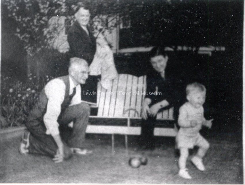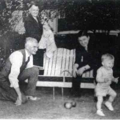 Life Magazine Photo, May 15, 1939. Four generations of the Coffman family on the backyard bowling green: Noah B., Daniel, Albert and Albert's son, Albert Dow Coffman. Have negative.Collection