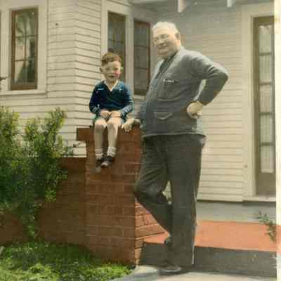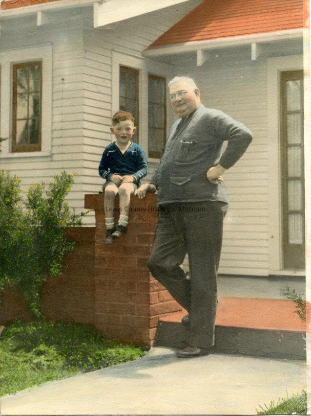 A. L. Coffman and his only grandson John F. Coffman at the home of John B. Coffman on West Street, Chehalis, WA. Photo ca. 1930.Collection