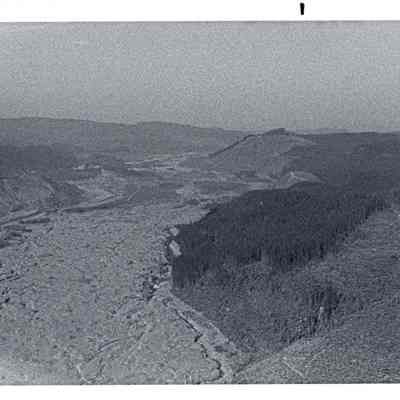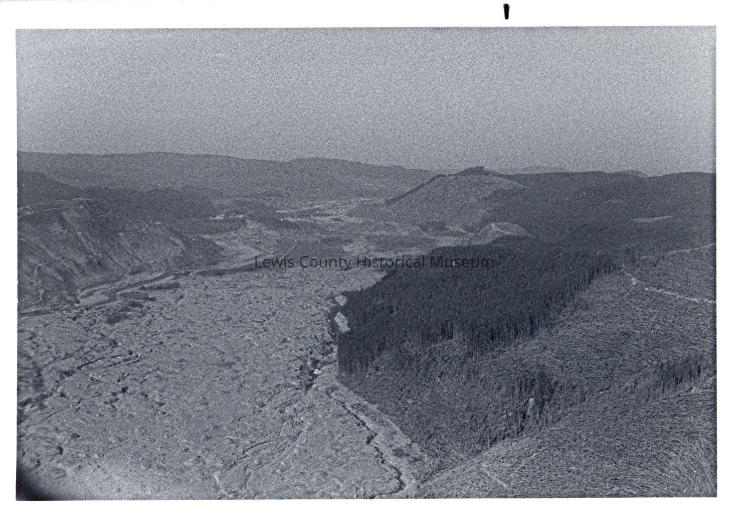Aerial view of the Toutle River mud flow taken on Aug. 21,1980. Have negative.Lexicon