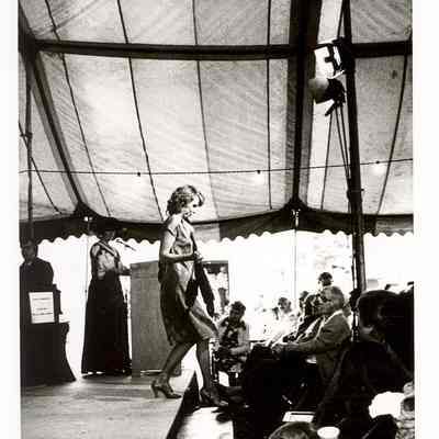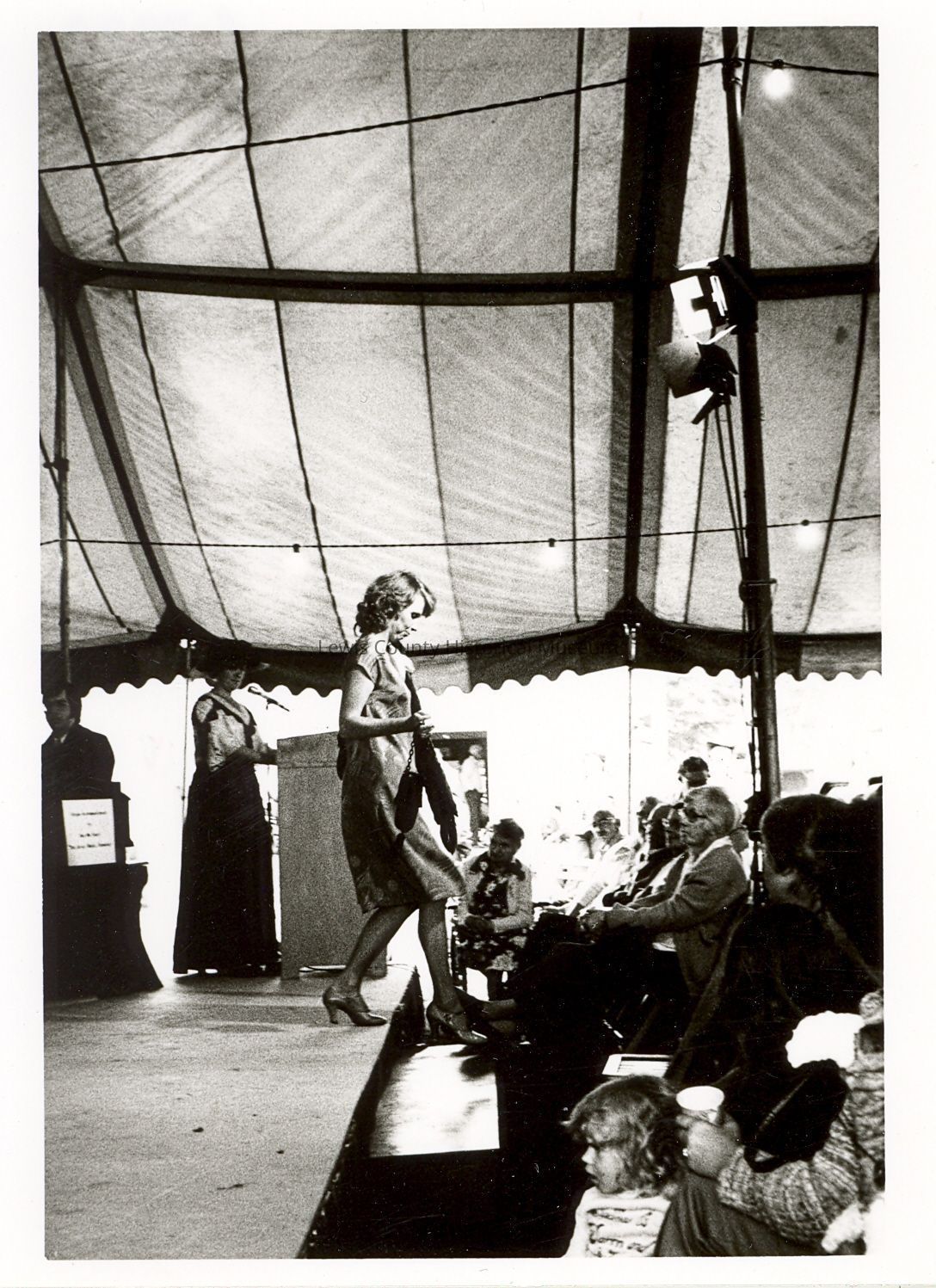 1980 Fashion Thru The Ages style show model Jean Haakenson wearing a 1920's pink dress and Kolinski fox wrap. Taken at the SWW Fairgrounds free stage. Have negative.Collection