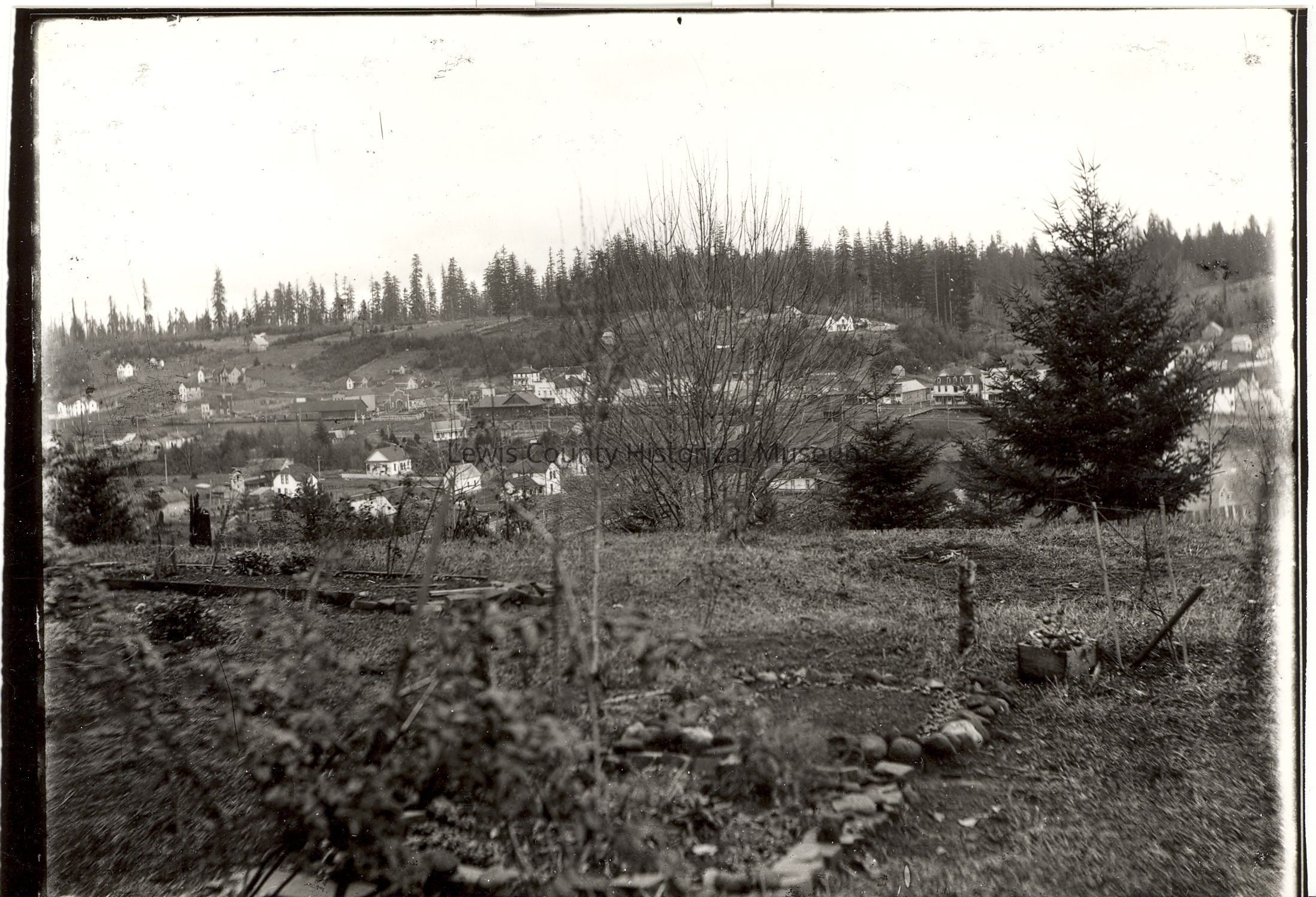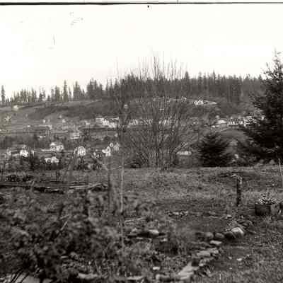 Photo of Winlock, WA taken from west side ca. 1910-20, fir trees on hillside. Have negative.Made/Created