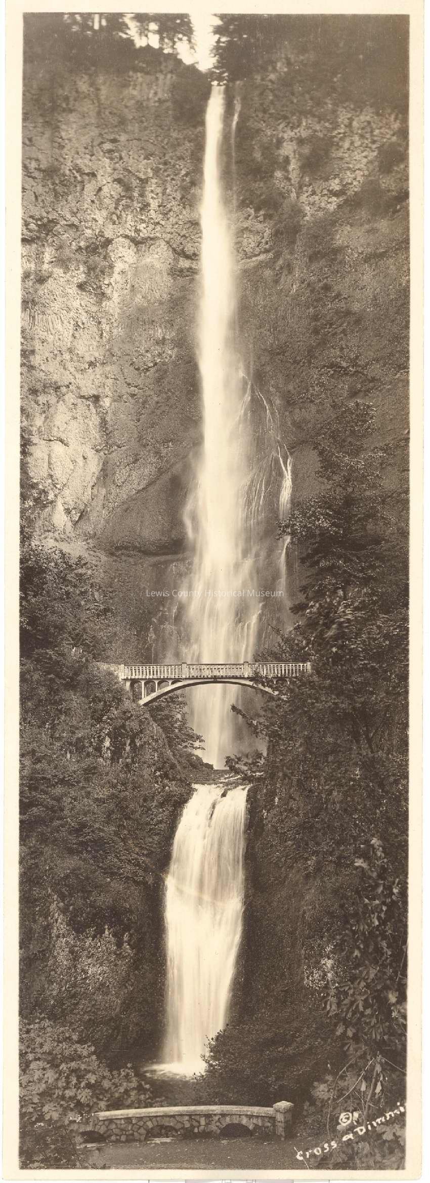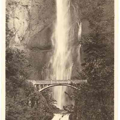 Multnomah Falls, Oregon, on the line of Union Pacific System and Columbia River Highway. Railroad bridge over falls.Lexicon