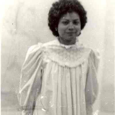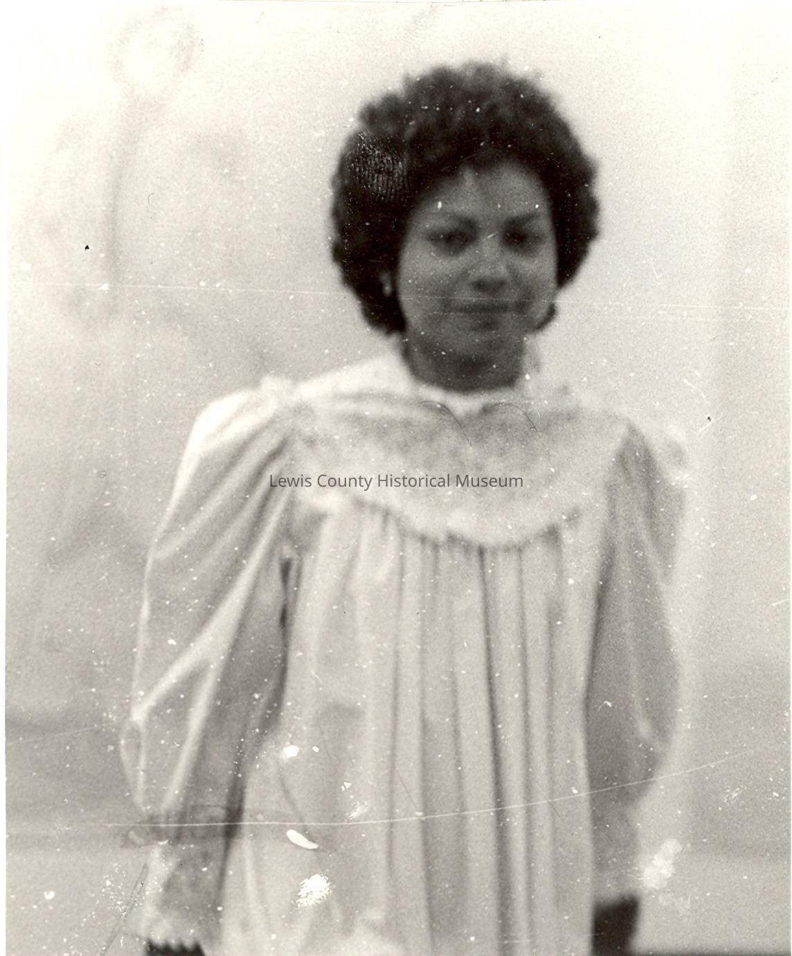 Olga Landing in a white 1900's night gown from "Fashion Thru The Ages", Lewis County Mall July 1977.Lexicon