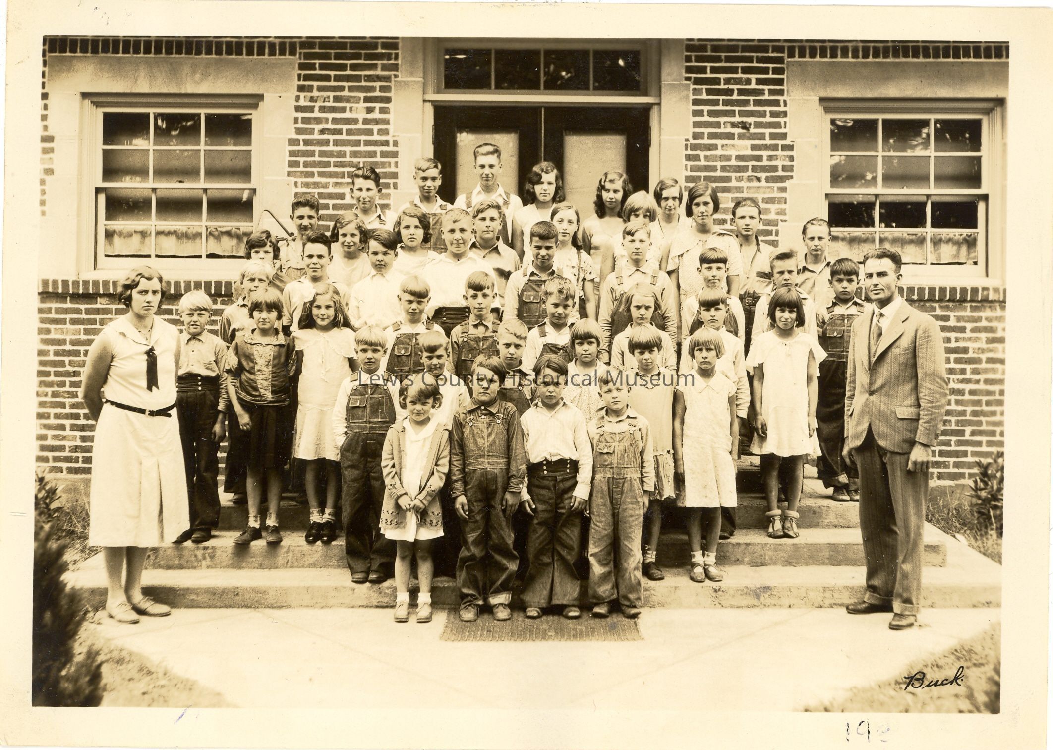 Photo of students and teachers at Forest School (2 room grade school) 1930-31. Primary teacher was Miss Gladys E. Johnson, now Mrs. John Krebs.Collection