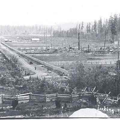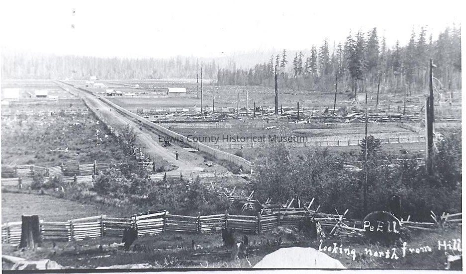 View of the town of Pe Ell, WA looking north from the hill, circa 1910. Excellent view Have negative.Collection