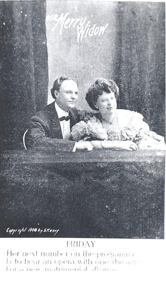 "Our Merry Widow" post card, Friday. Her next number on the program is to hear an opera with one she admires for a new matrimonial alliance she already desires. Have negative.Collection