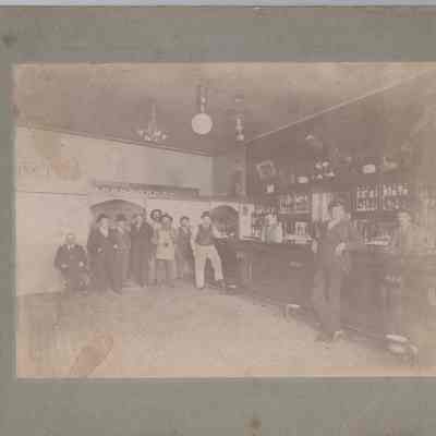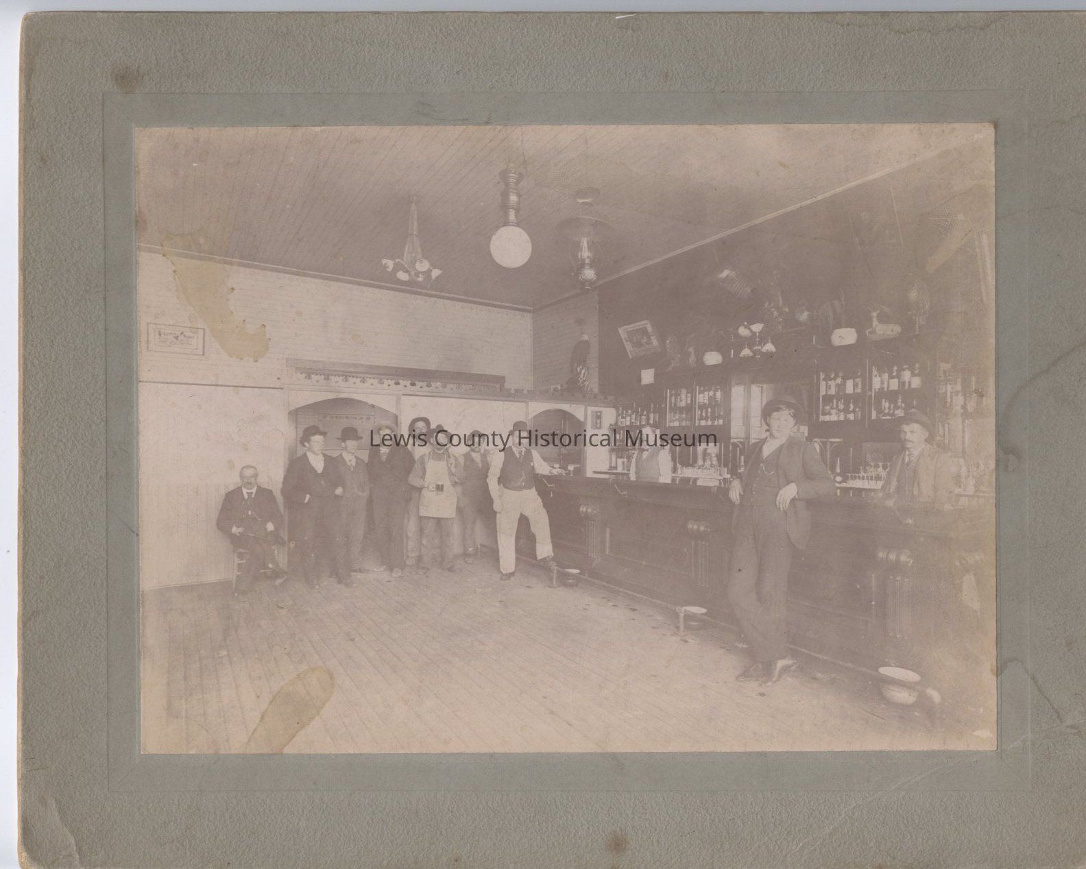 Len Kuehner Sr's Germania Saloon at 115 Chehalis Ave, Chehalis, Sept. 22, 1900. 6 1/8x8 1/4, cardboard mounted, faded black and white, Kuehner family donation, 04.02.Collection