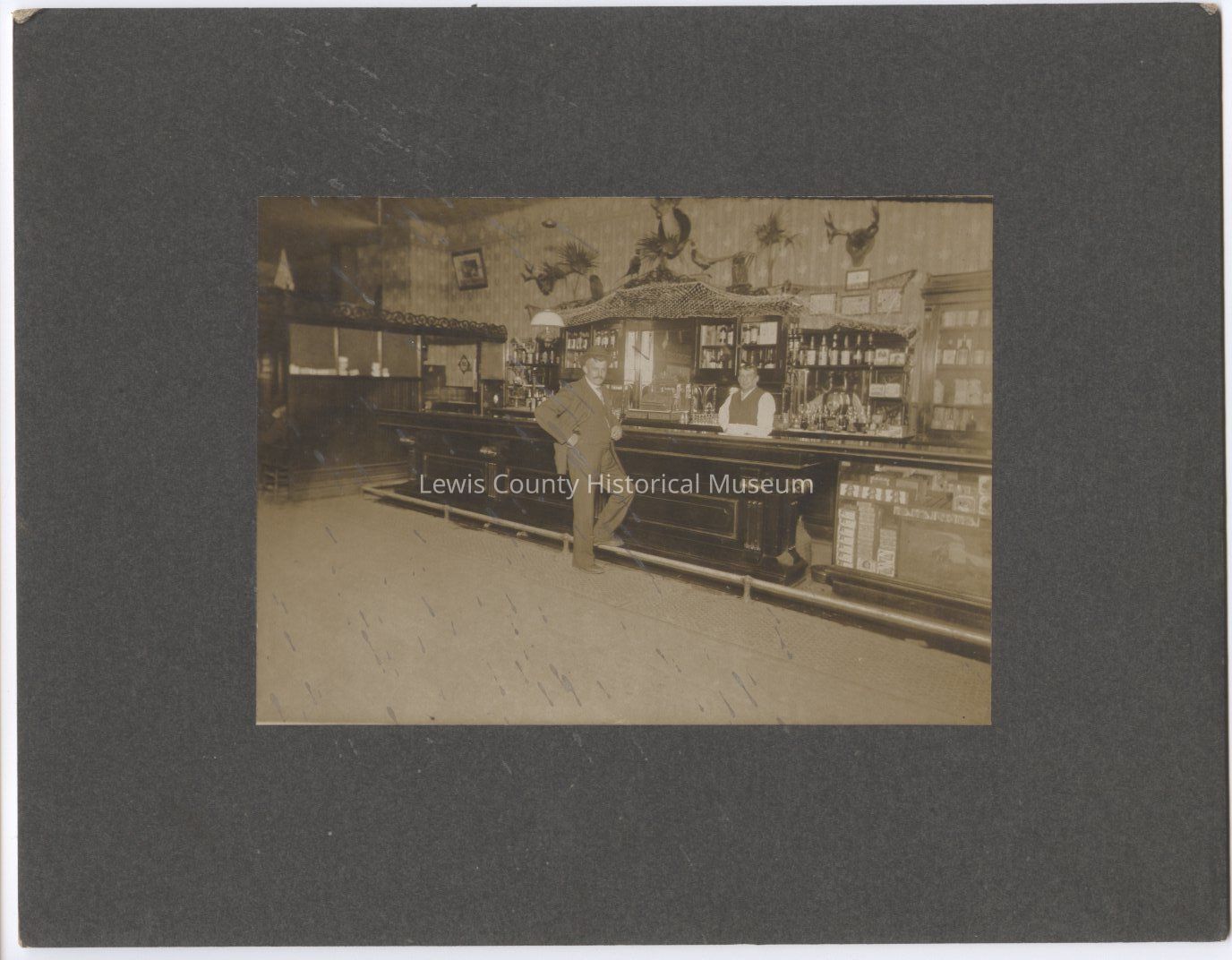 Len Kuehner Sr's Germania Saloon at 115 Chehalis Ave, Chehalis, Sept. 1, 1908. 3 7/8x5 1/2, cardboard mounted, black and white, Kuehner family donation, 04.02.Collection
