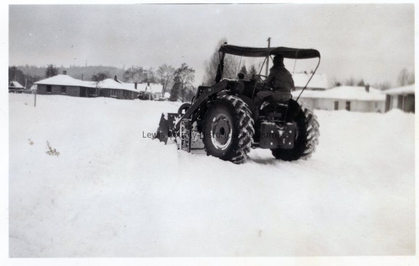 Art Plummer plowed K Street in Centralia, WA, to open it up for traffic during heavy snowfall in January 1950.