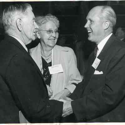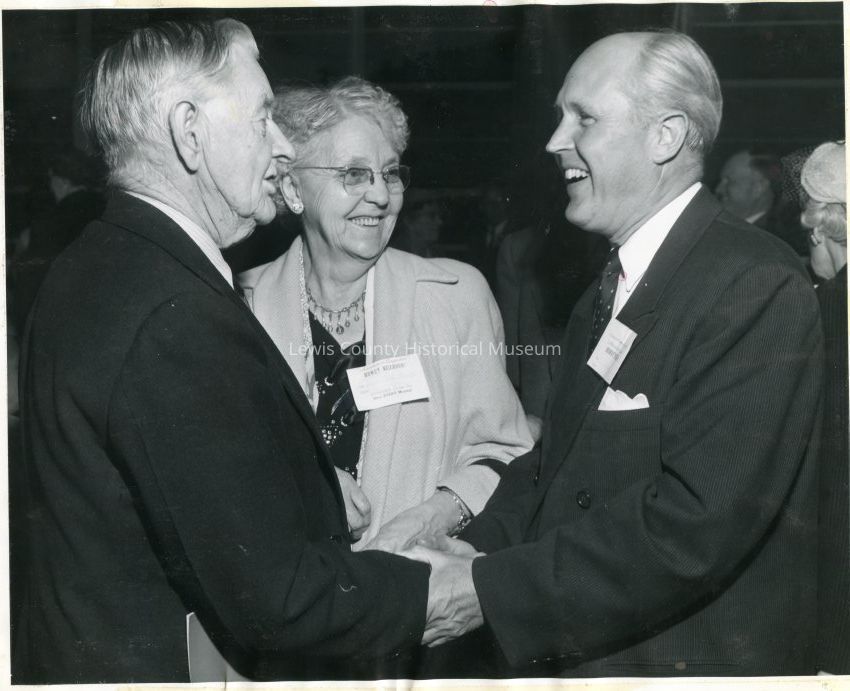 Governor Langlie greeting unknown couple at Chehalis Adventure celebration at WF West High School, May 16,1955.Collection