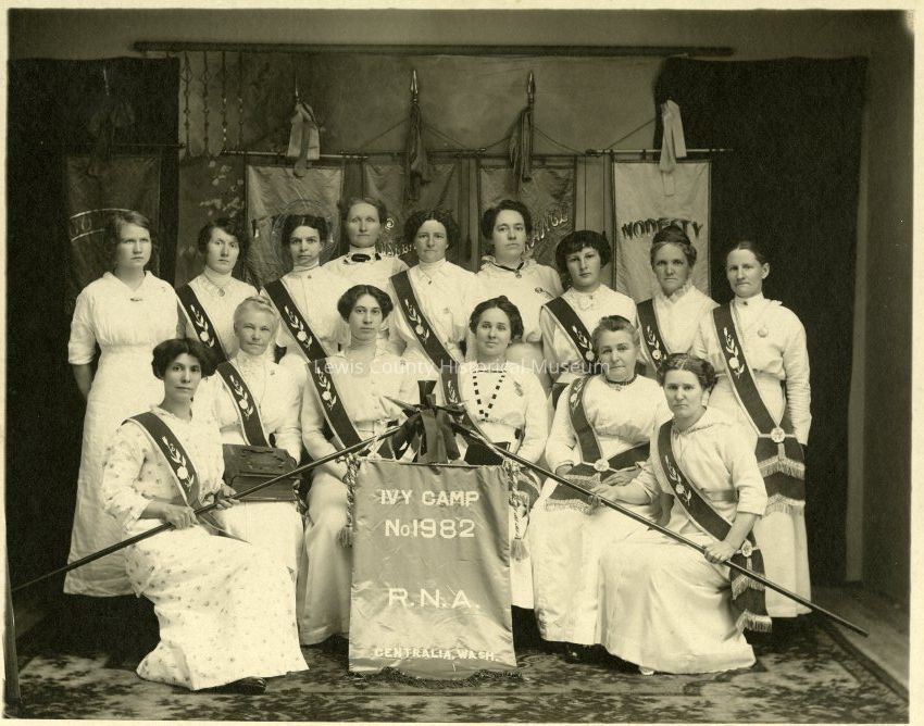 Lodge members in dress of the Ivy Camp No. 1982, Royal Neighbors of America, Centralia,WA ca 1914.Collection