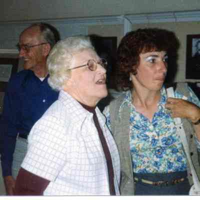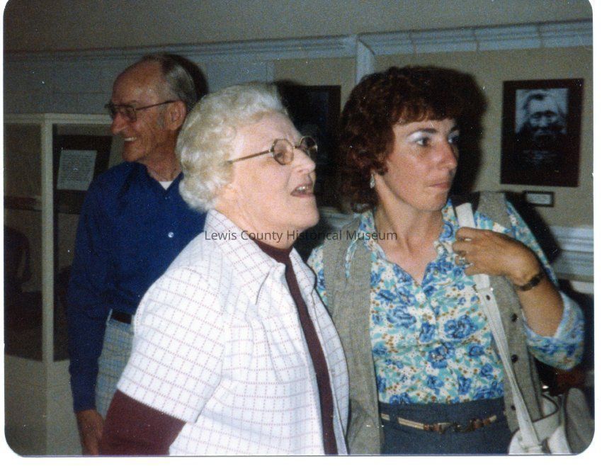 Fred Holtman, Velma Holtman, Jeannie Shambley looking at Indian exhibit at Grand Opening of Lewis County Historical Museum. Sept. 19, 1979. Have negative.Lexicon