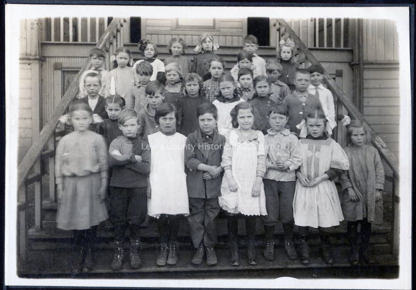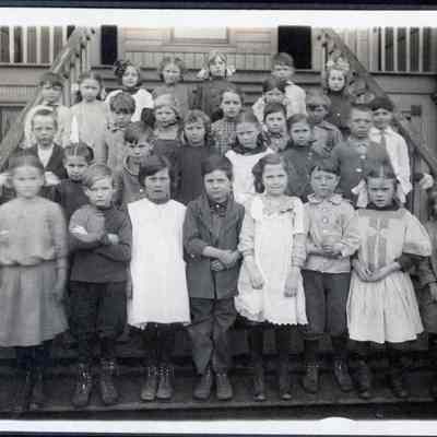 Unidentified class photo of Centralia School, circa 1910. Students appear to be about 1st or 2nd grade. Thought to be first Lincoln School. Same school as P8894 to P8902.Collection