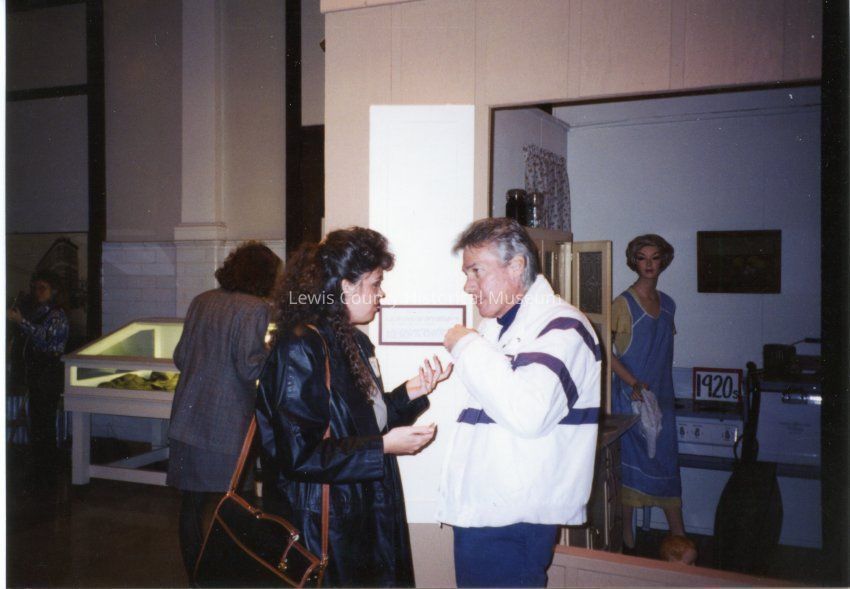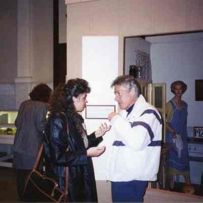 Lewis County Historical Museum Open House for the 1919 Centralia Massacre Exhibit Nov. 2, 1994. Cheryl and Dan Murray with Brenda O'Connor in left background. Have negative.