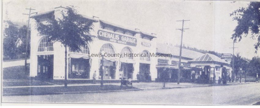 Chehalis Garage built and operated by John B. Coffman from 1919 to 1955 when he sold out to Ralph Mauel. Coffman remained as President of the Incorporation until 1957. Location was 950 to 990 Market St. Photo 1928.Collection