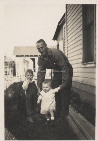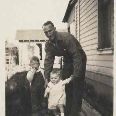 Pearl Nolan and children, Jerry and Kelly Nolan, ca. 1930s, 2 1/8x3, black and white, unknown donor.Cataloged By