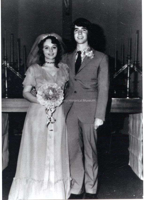 From book project of History of Centralia Saint Mary's Catholic Church, 1910-86. This shows wedding couple Gerry and Nora Greisen, 1978. Have negative.