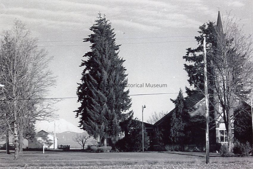 Another view of St. Francis Xavier Roman Catholic Church at Cowlitz Mission on Cowlitz Prairie. b&wLexicon