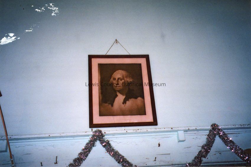 Portrait of George Washington, first US President, on wall in old Salzer Valley School, 2009. Color print. 2012.27Lexicon