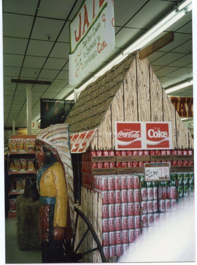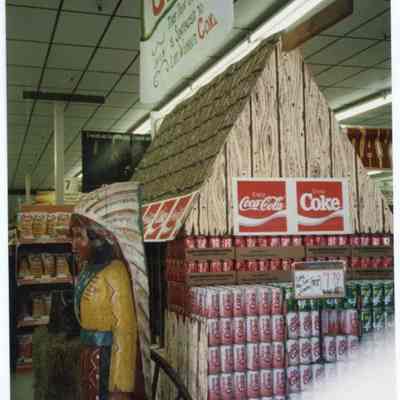 Color photo showing the Safeway display using Museum artifacts, fall 1986.Collection
