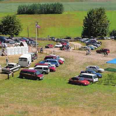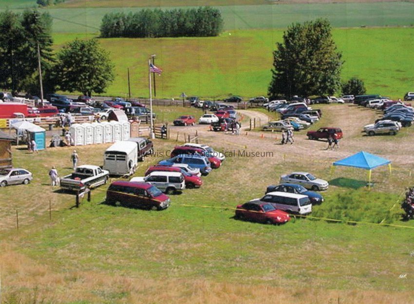 Grounds at Hamilton Farm during Garlic Fest, overlooking Scheuber Road and Chehalis River Valley, ca 2006. Color printLexicon