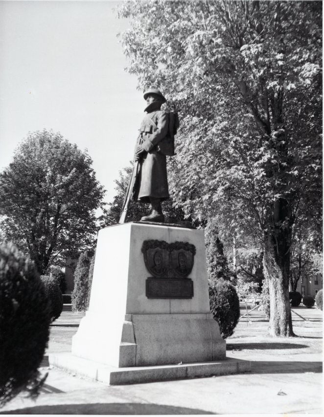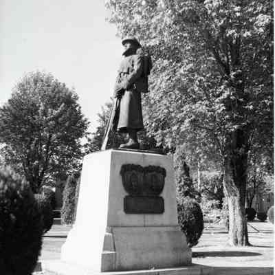 The Sentinel erected in George Washington Park in downtown Centralia, WA. The granite and bronze statue was dedicated Nov. 11, 1924. Have negative.Collection
