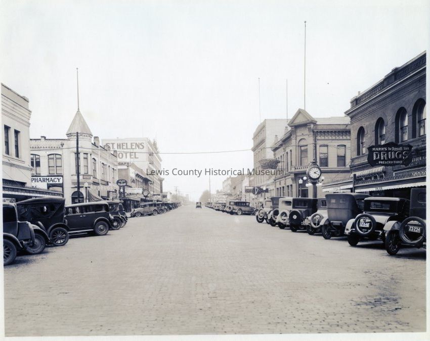 Market Street, Chehalis, WA, photo ca. 1927 when this was Pacific Highway, later Hwy 99.